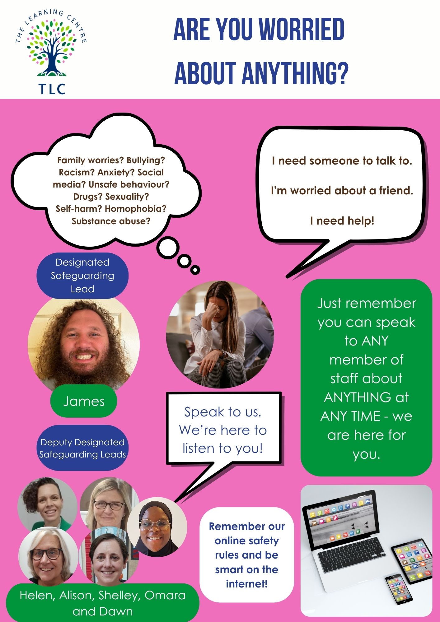 - You can talk to any adult in the school about anything. Do not keep your concerns to yourself; nothing is too small or too big.